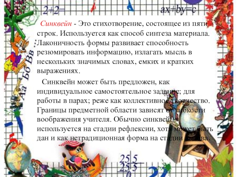 Слайд 12 Синквейн - Это стихотворение, состоящее из пяти строк.