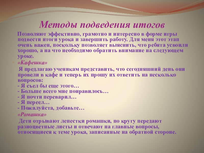 Слайд 25Методы подведения итогов