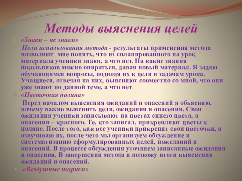 Слайд 24Методы выяснения целей