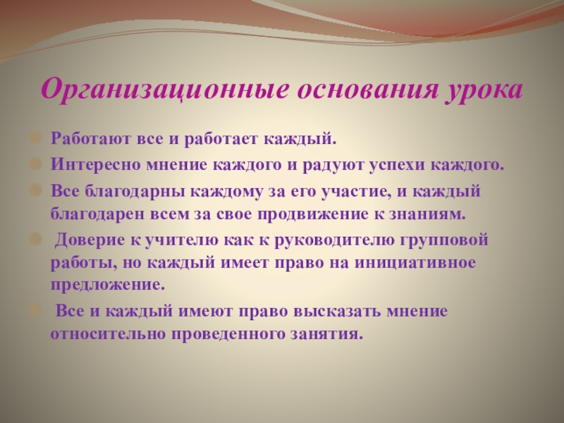 Организационные основания урока