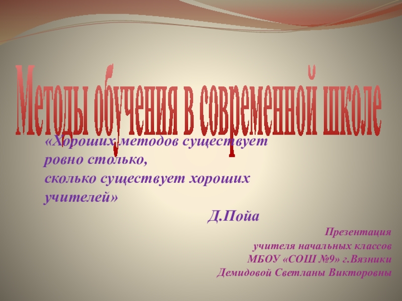 Презентация учителя начальных классов МБОУ «СОШ №9» г.Вязники Демидовой Светланы Викторовны