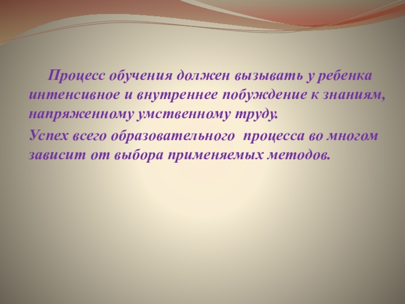 Слайд 12 Процесс обучения должен вызывать у ребенка интенсивное