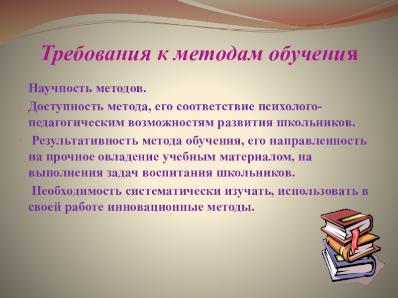 Слайд 6Требования к методам обучения