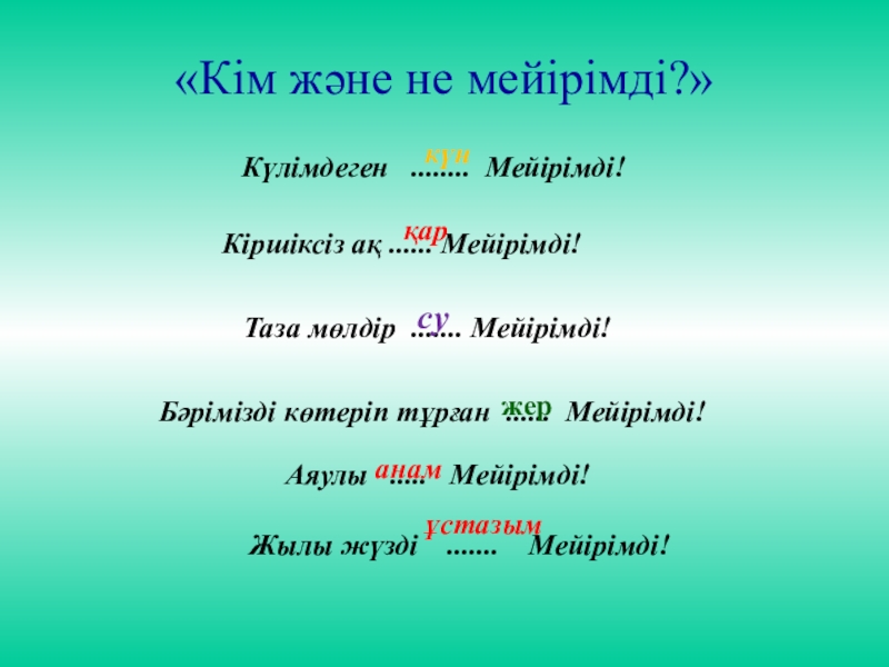 Бәрімізді көтеріп тұрған ...... Мейірімді!