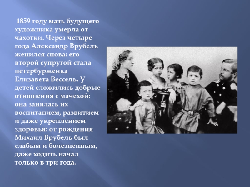 Слайд 4 1859 году мать будущего художника умерла от чахотки. Через четыре