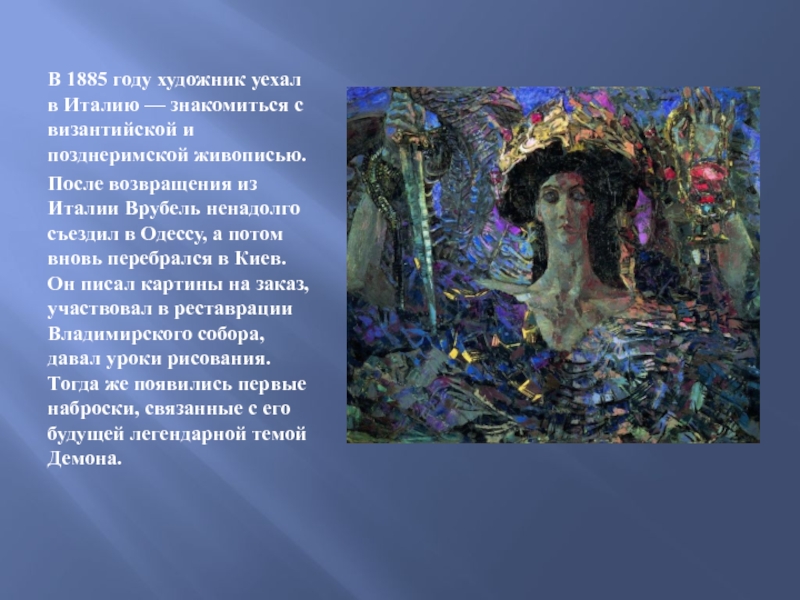 Слайд 7В 1885 году художник уехал в Италию — знакомиться с византийской