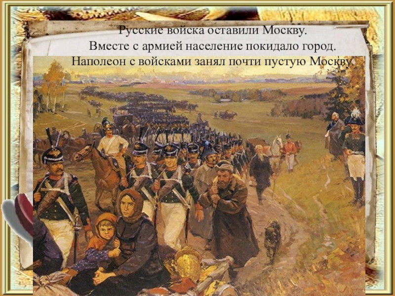Слайд 28Русские войска оставили Москву.