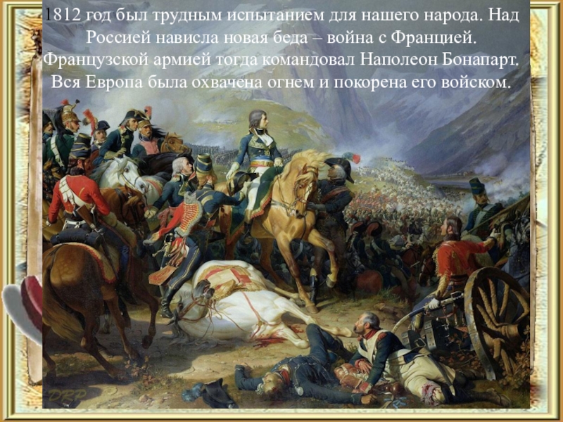 Слайд 41812 год был трудным испытанием для нашего народа. Над Россией нависла