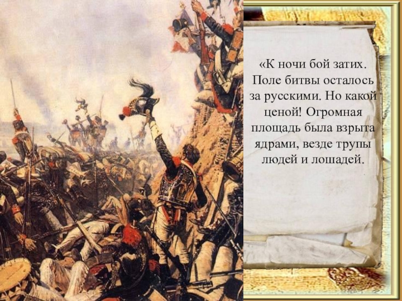 Слайд 21«К ночи бой затих. Поле битвы осталось за русскими. Но какой