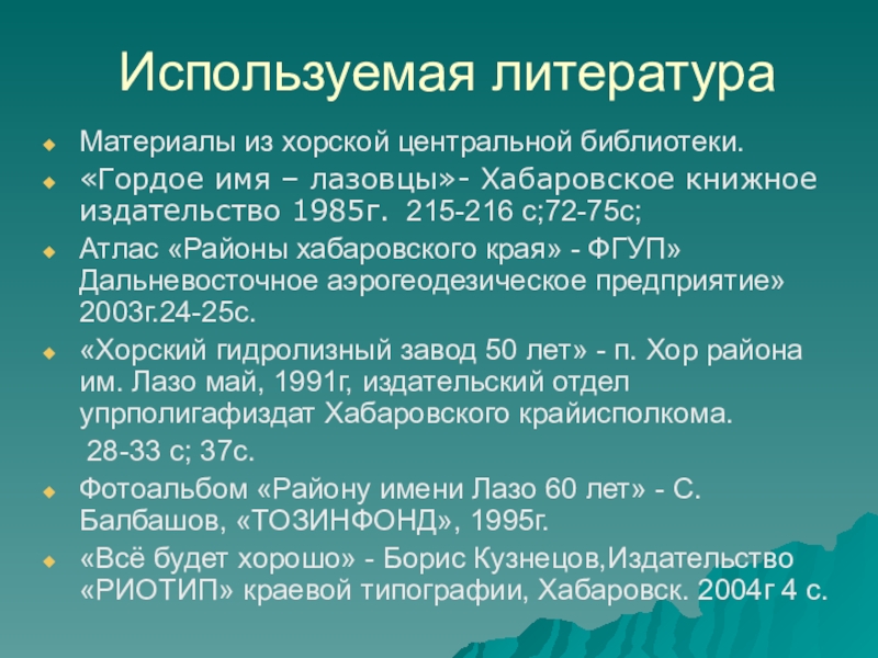 «Хорский гидролизный завод 50 лет» - п. Хор района им. Лазо май, 1991г, издательский отдел упрполигафиздат Хабаровского крайисполкома.