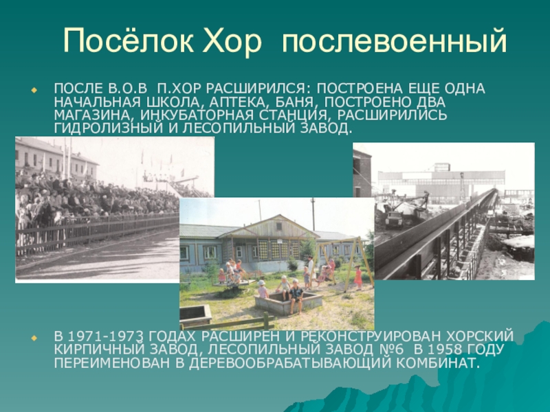 Слайд 11 Посёлок Хор послевоенный