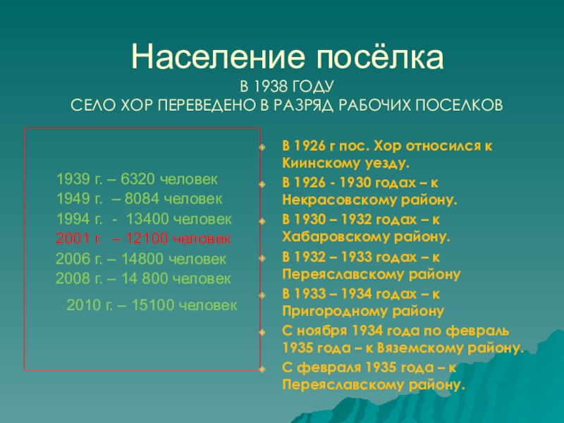 Слайд 10Посёлок Хор в годы