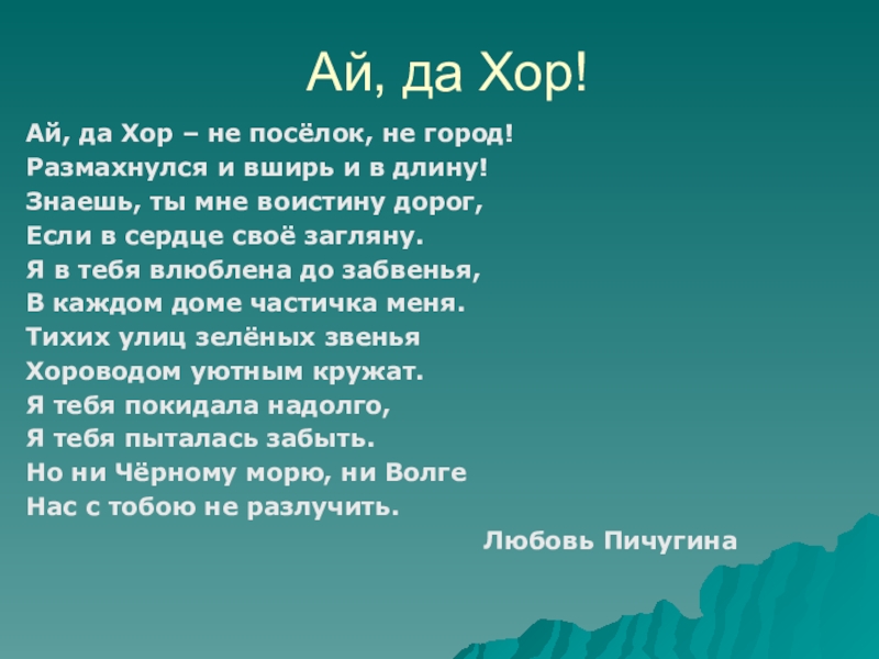 Ай, да Хор – не посёлок, не город!