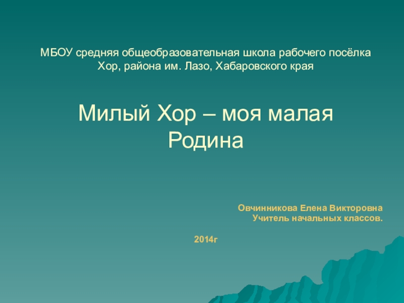 Слайд 1МБОУ средняя общеобразовательная школа рабочего посёлка Хор, района им. Лазо, Хабаровского