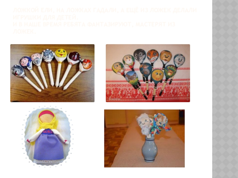 Слайд 9Ложкой ели, на ложках гадали, а ещё из ложек делали игрушки