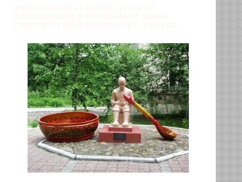 Слайд 8  Много умельцев в России, которые изготавливают и расписывают ложки. Существует даже