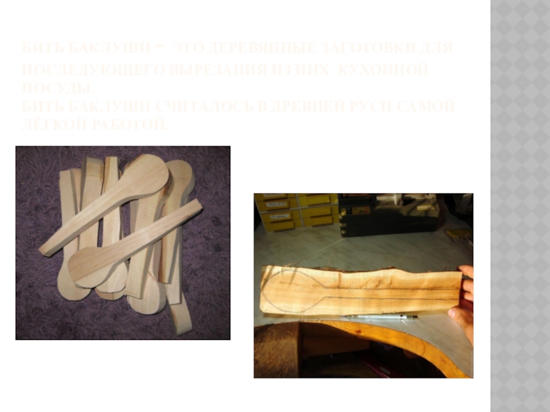 Слайд 6Бить баклуши - это деревянные заготовки для последующего вырезания из них