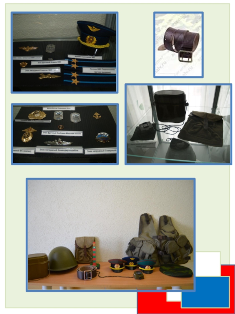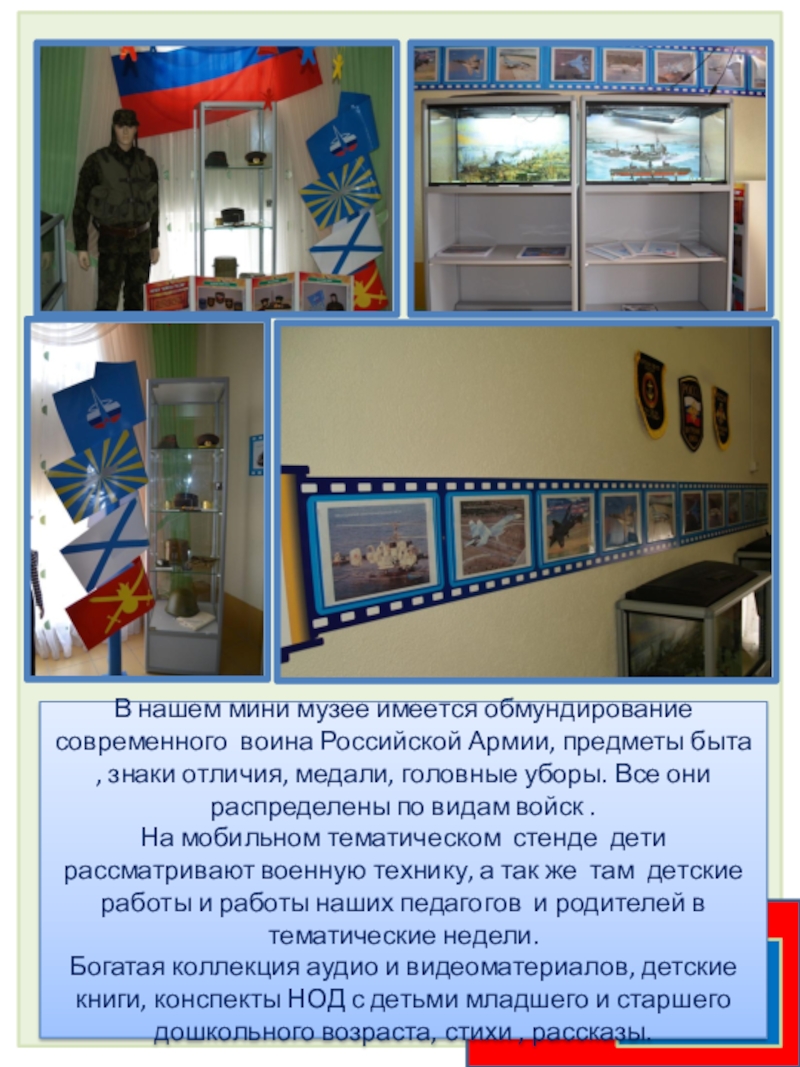 Слайд 5В нашем мини музее имеется обмундирование современного воина Российской Армии, предметы