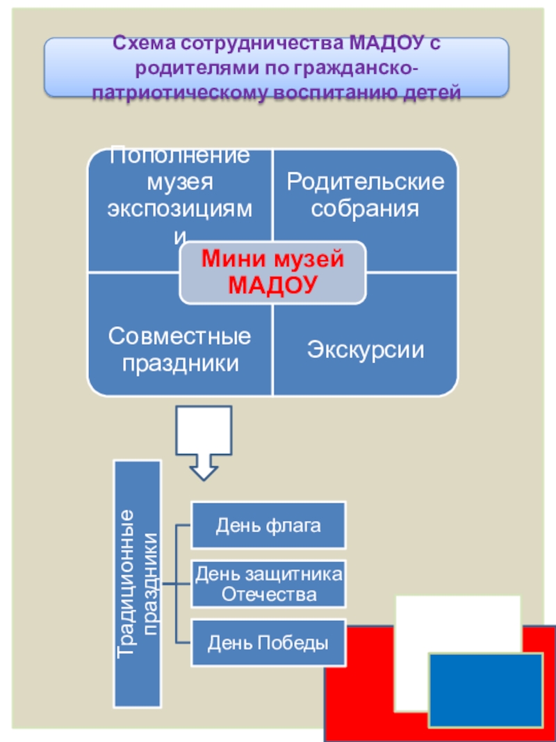 Слайд 15Схема сотрудничества МАДОУ с родителями по гражданско-патриотическому воспитанию детей