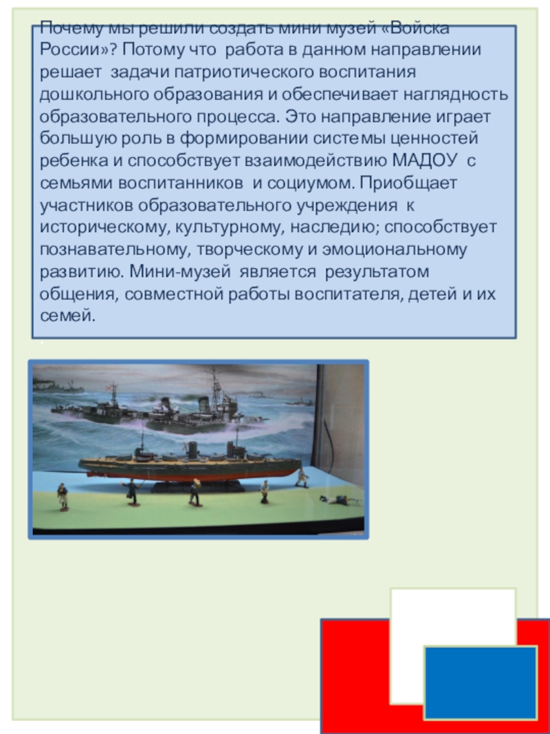 Слайд 8Почему мы решили создать мини музей «Войска России»? Потому что работа