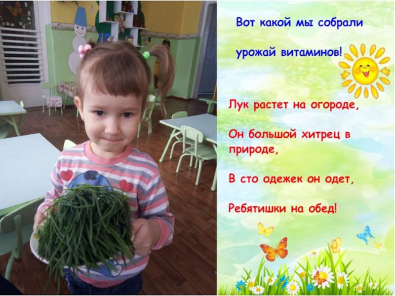 Презентация мини - проекта в первой младшей группе на тему:Зеленый лук - наш друг Детские презентации