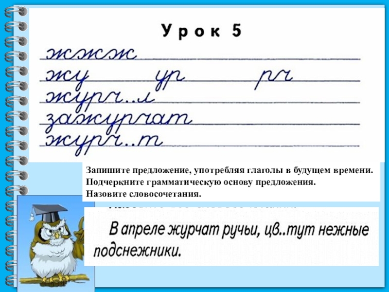 Слайд 95Запишите предложение, употребляя глаголы в будущем времени. Подчеркните грамматическую основу предложения.