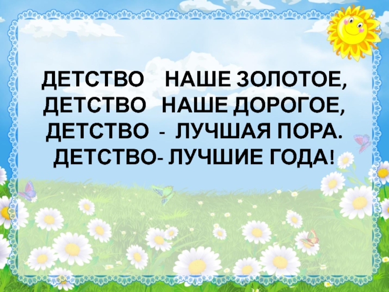 Слайд 2ДЕТСТВО НАШЕ ЗОЛОТОЕ, ДЕТСТВО НАШЕ ДОРОГОЕ, ДЕТСТВО - ЛУЧШАЯ