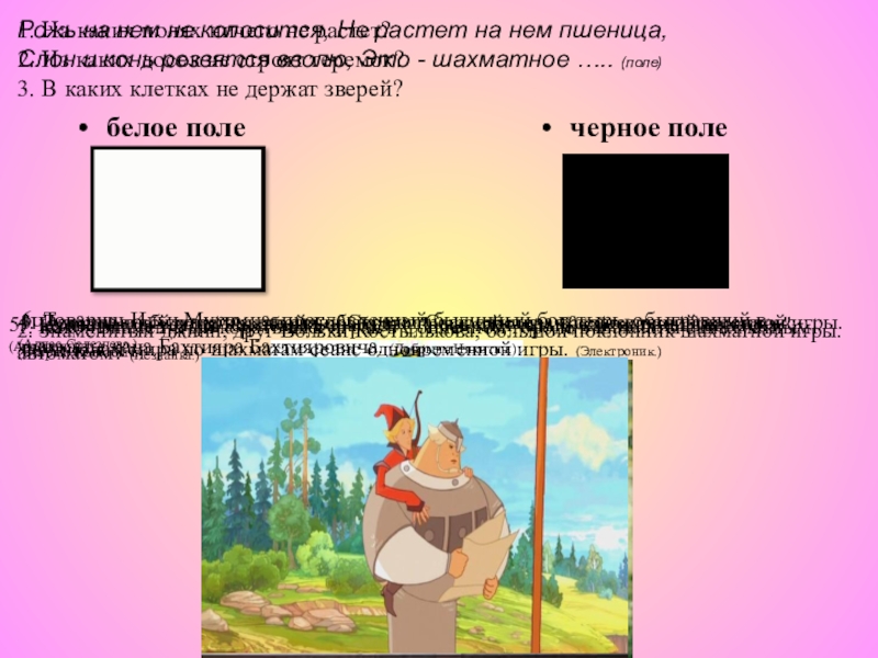 1. Какой знаменитый коротышка играл в Солнечном городе в шахматы с шахматным автоматом? (Незнайка.)