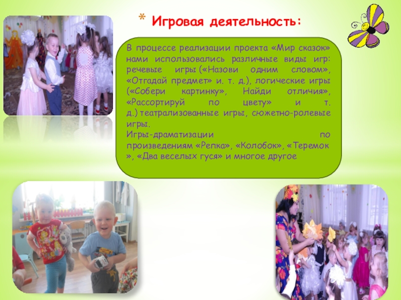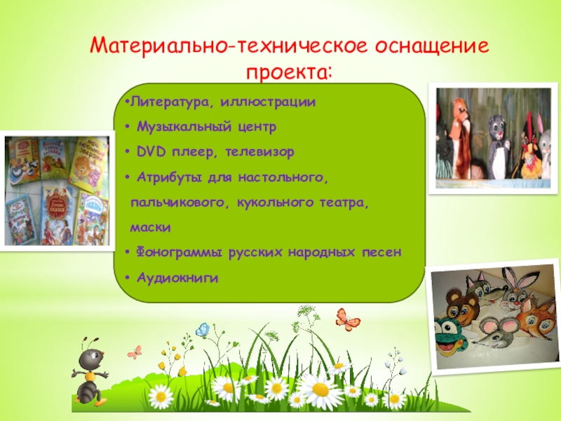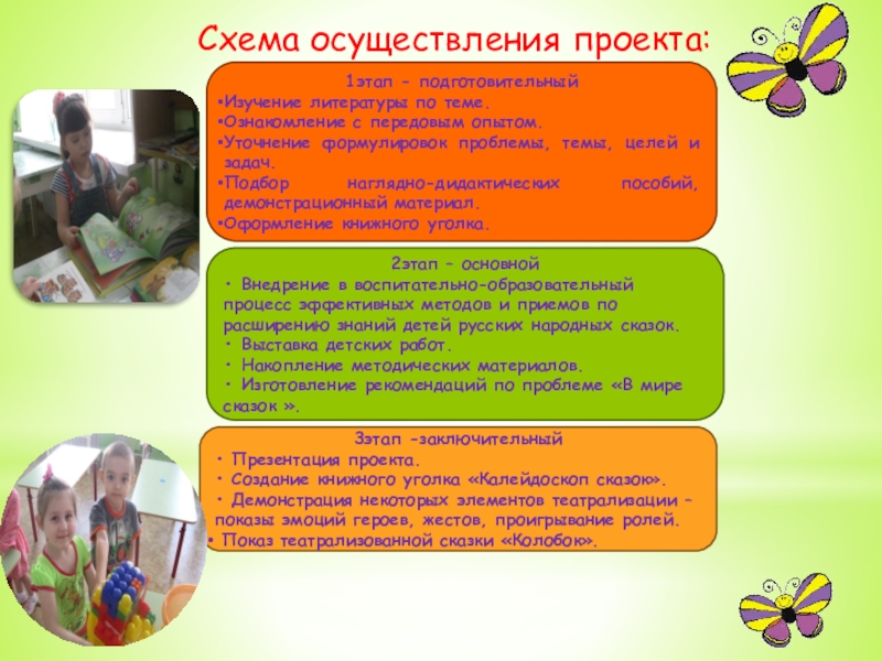 Изготовление поделок «Моя сказочная игрушка», создание ширмы и героев сказок - кукол, оформление группы по возрастным требованиям, приобретение русских сказок в картинках и многое другое.