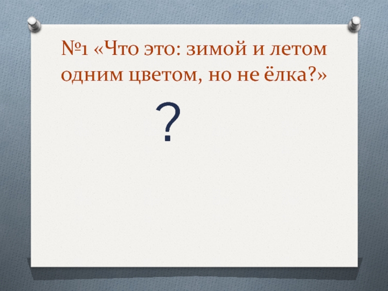 Слайд 2№1 «Что это: зимой и летом одним цветом, но не ёлка?»