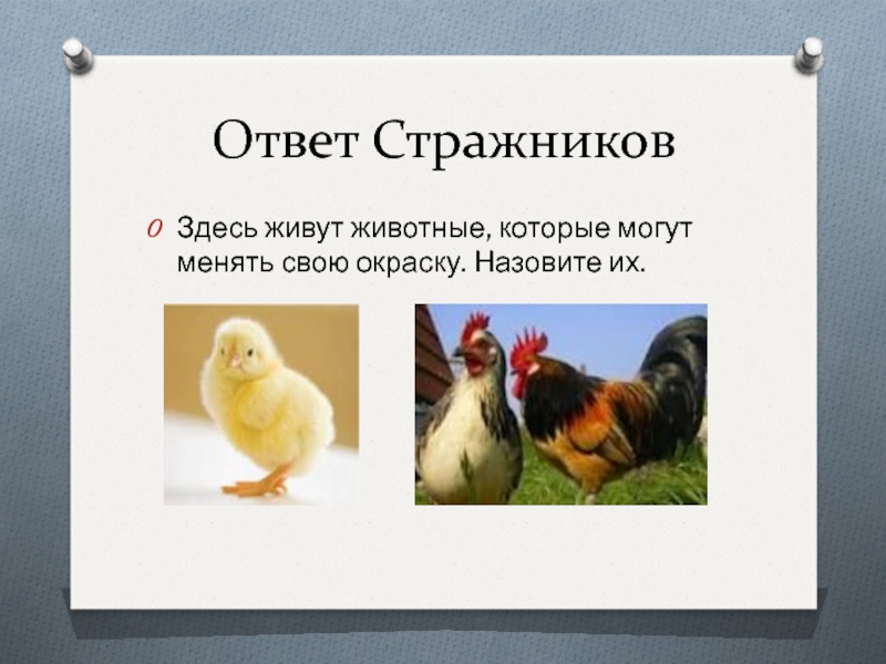 Ответ СтражниковЗдесь живут животные, которые могут менять свою окраску. Назовите их.