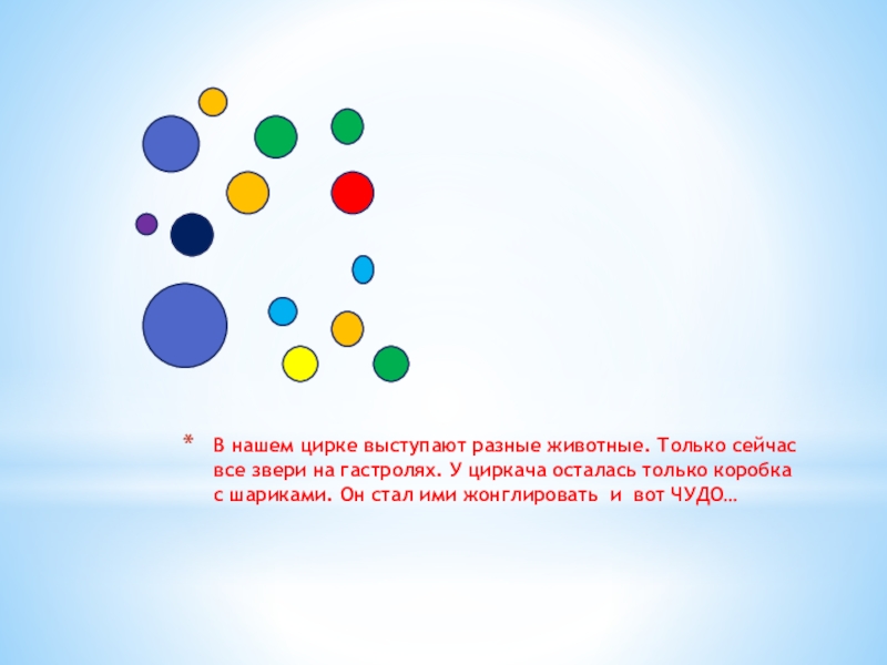 гастролях. У циркача осталась только коробка с шариками. Он стал ими жонглировать и вот ЧУДО…