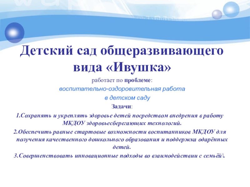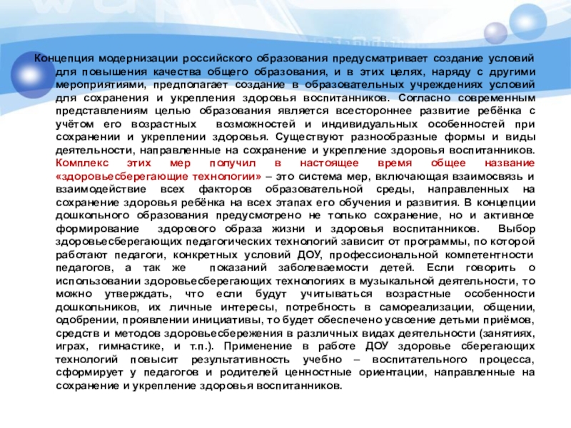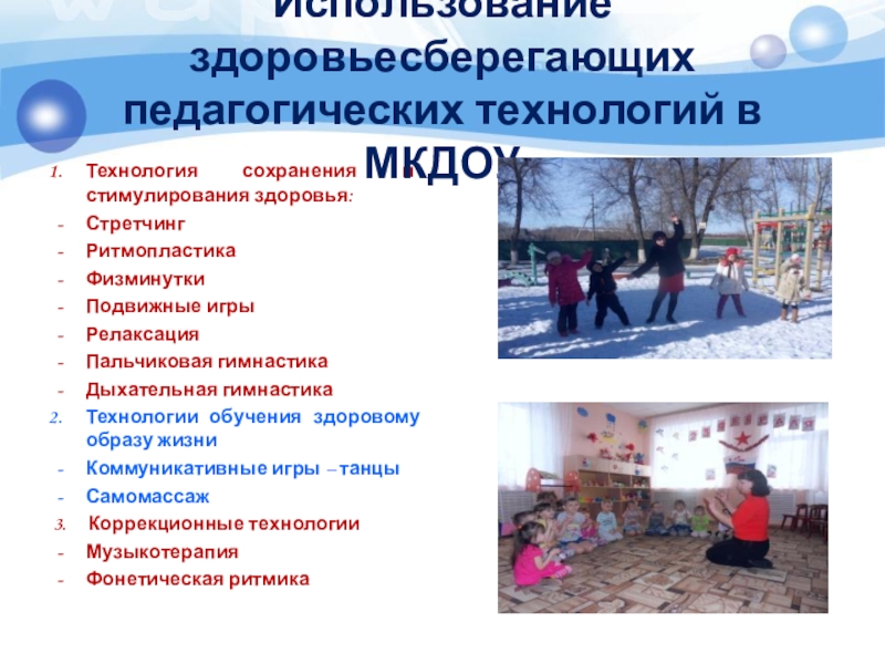Использование здоровьесберегающих педагогических технологий в МКДОУ