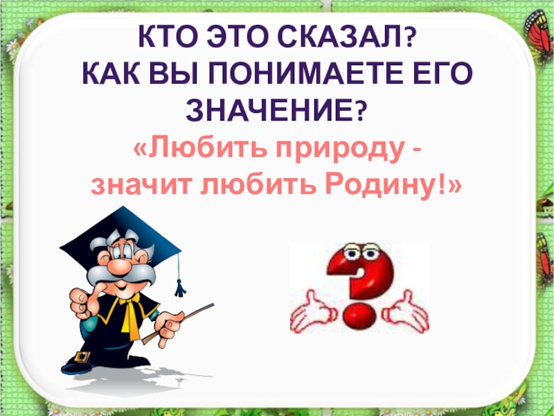 «Любить природу – значит любить Родину» М.М.Пришвин
