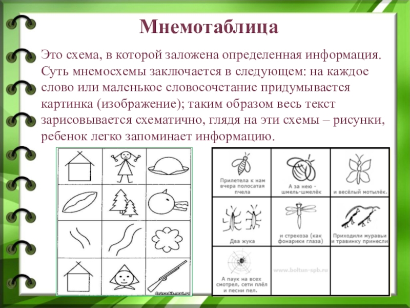 следующем: на каждое слово или маленькое словосочетание придумывается картинка (изображение); таким образом весь текст зарисовывается схематично, глядя на эти схемы – рисунки, ребенок легко запоминает информацию.