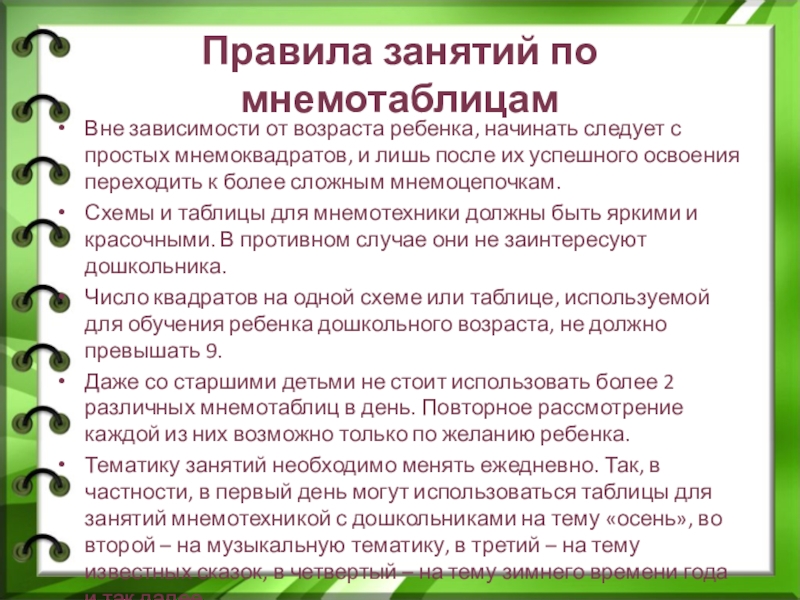 Правила занятий по мнемотаблицам