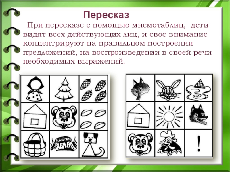 При пересказе с помощью мнемотаблиц, дети видят всех действующих лиц,