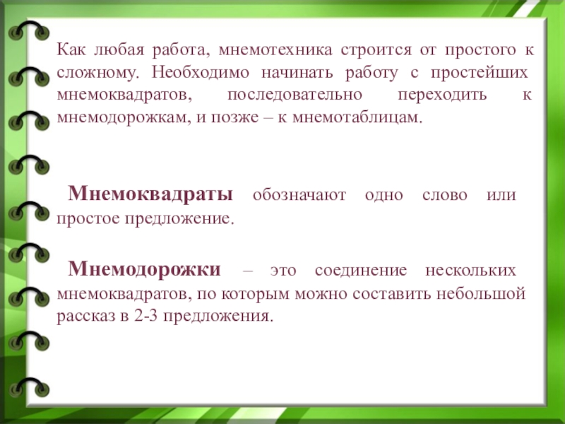 Как любая работа, мнемотехника строится от простого к сложному. Необходимо начинать