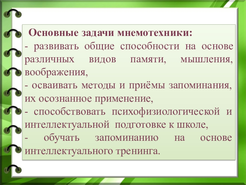 Слайд 6 Основные задачи мнемотехники: