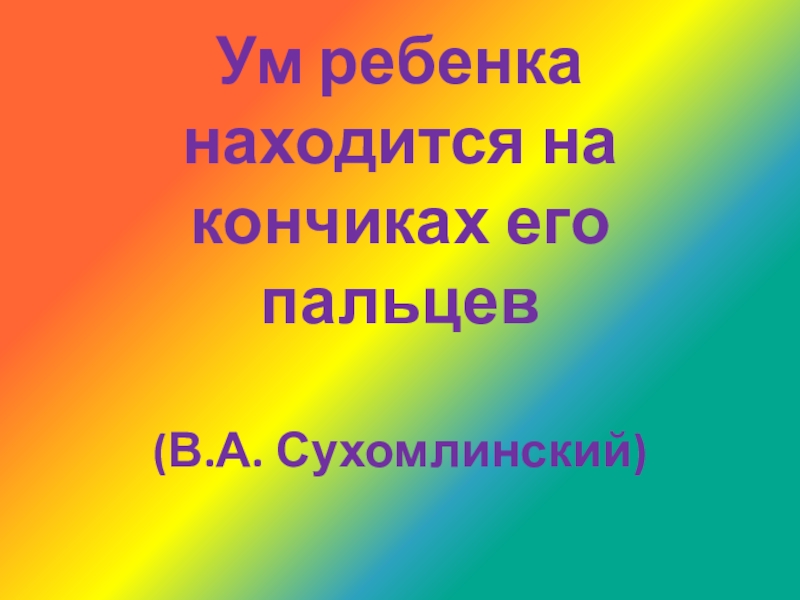 Слайд 1"Ум ребёнка находится на кончиках его пальцев"