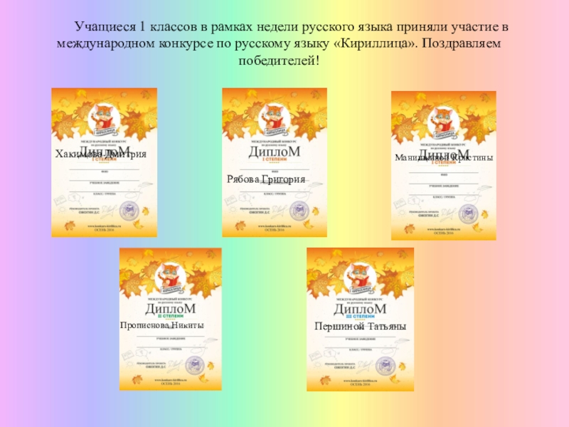 языка приняли участие в международном конкурсе по русскому языку «Кириллица». Поздравляем победителей!