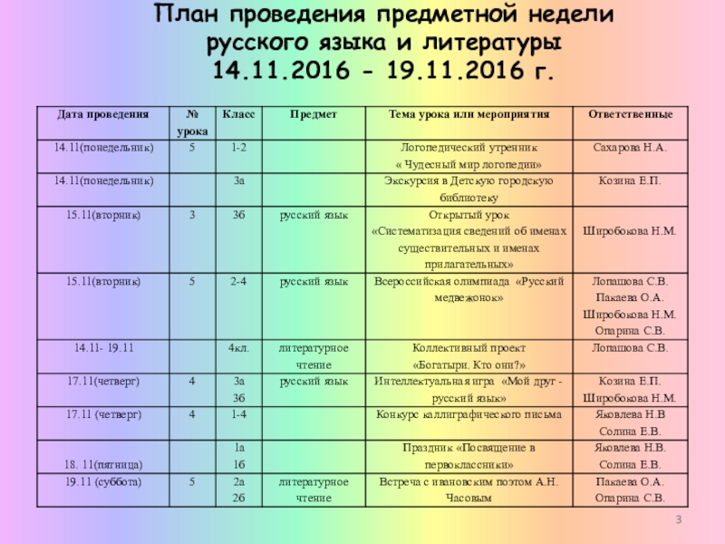 Слайд 3План проведения предметной недели