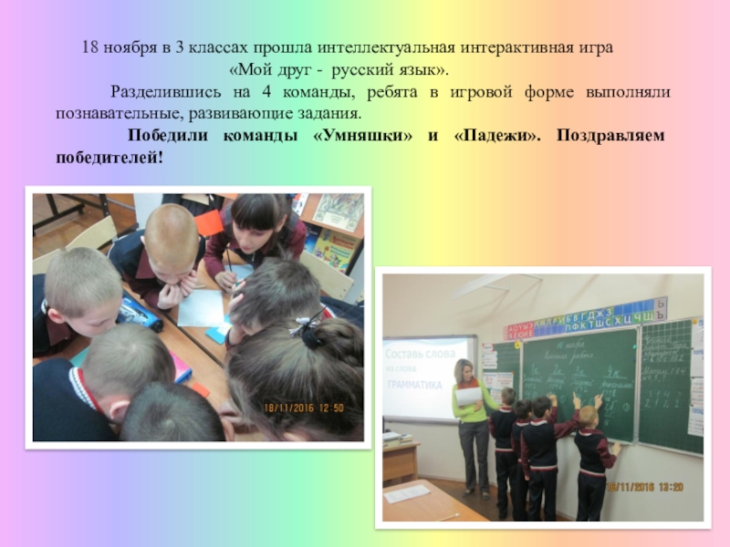 Слайд 11 18 ноября в 3 классах прошла интеллектуальная интерактивная