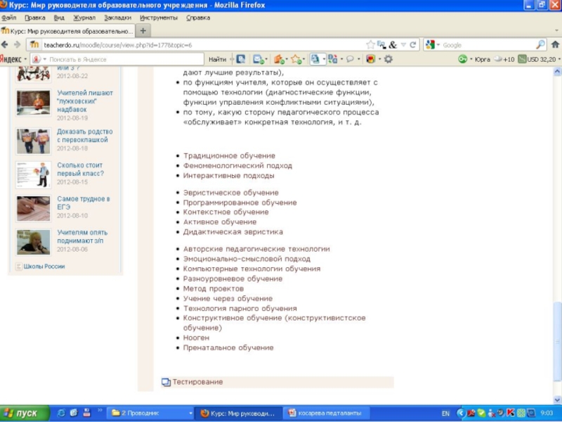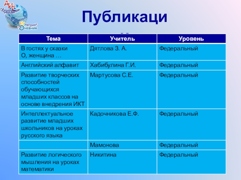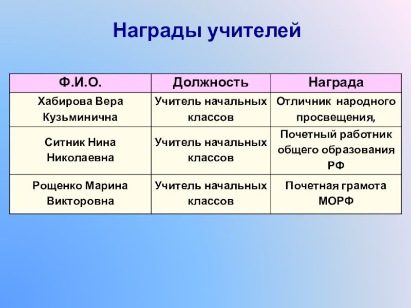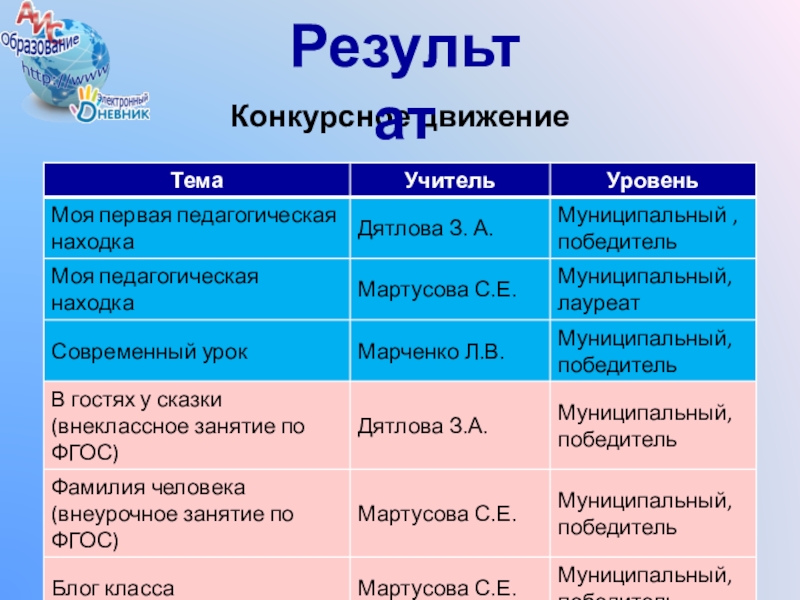Конкурсы: «Учитель года», «ИТ-педагог», «Педагогические таланты», «Первый учитель»