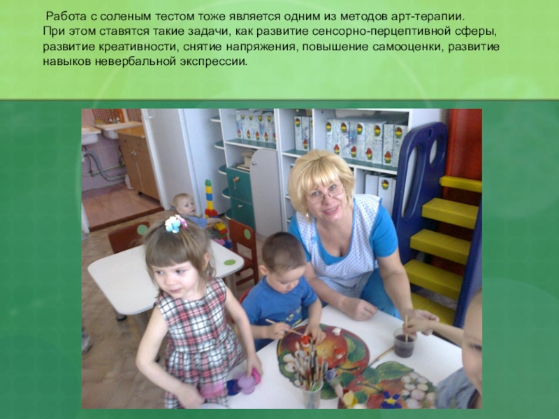 Слайд 25 Работа с соленым тестом тоже является одним из методов арт-терапии.