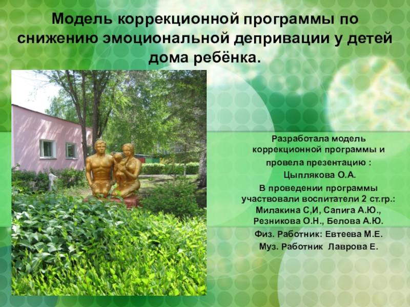 Слайд 1Модель коррекционной программы по снижению эмоциональной депривации у детей дома ребёнка.