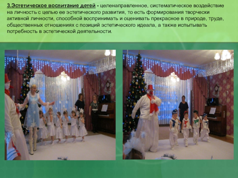 Слайд 133.Эстетическое воспитание детей - целенаправленное, систематическое воздействие на личность с целью ее