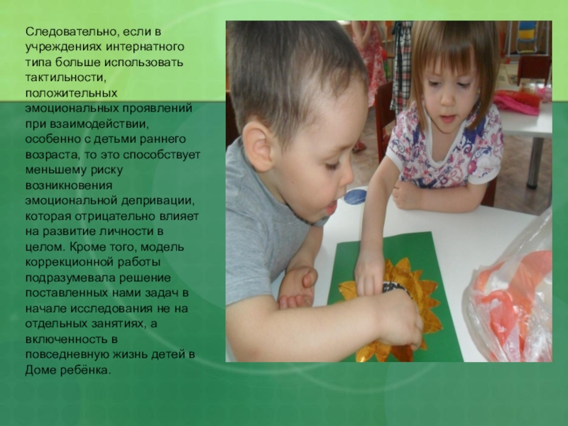 Слайд 31Следовательно, если в учреждениях интернатного типа больше использовать тактильности, положительных эмоциональных
