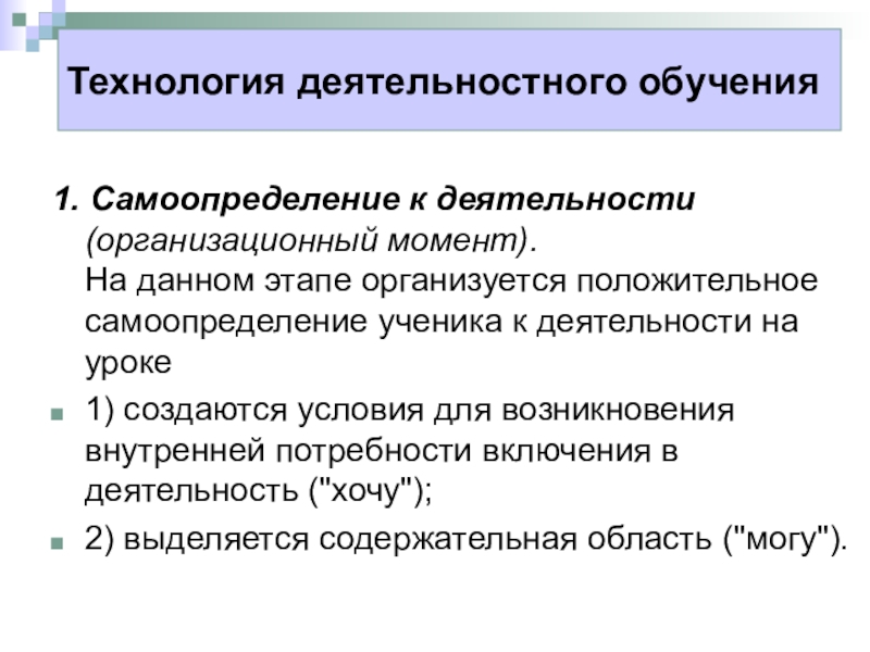 1) создаются условия для возникновения внутренней потребности включения в деятельность ("хочу");