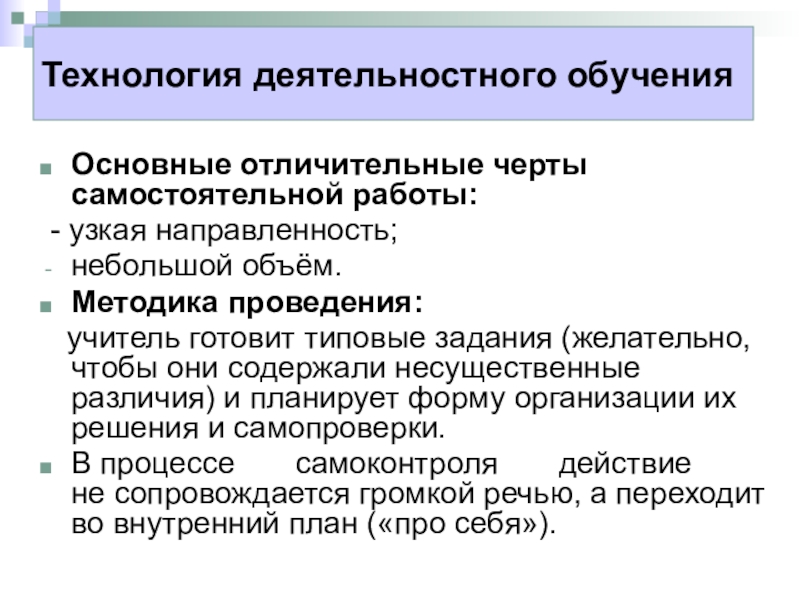 учитель готовит типовые задания (желательно, чтобы они содержали несущественные различия) и планирует форму организации их решения и самопроверки.